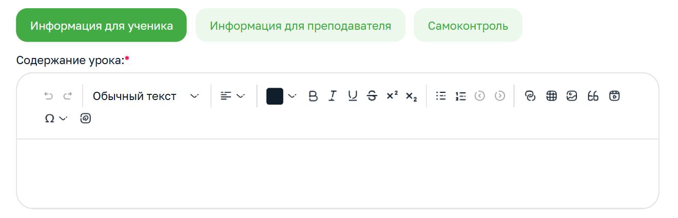В поле «Содержание урока» разместите конспект для ученика.