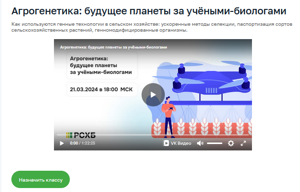 Пролистайте урок до конца и нажмите кнопку «Назначить классу».